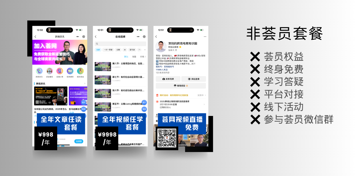 2.¥9998元/年:观看荟网全年系统化视频课程,包括跨境选品、平台规则、广告运营等高价值实战内容,帮助您解决日常运营难题。